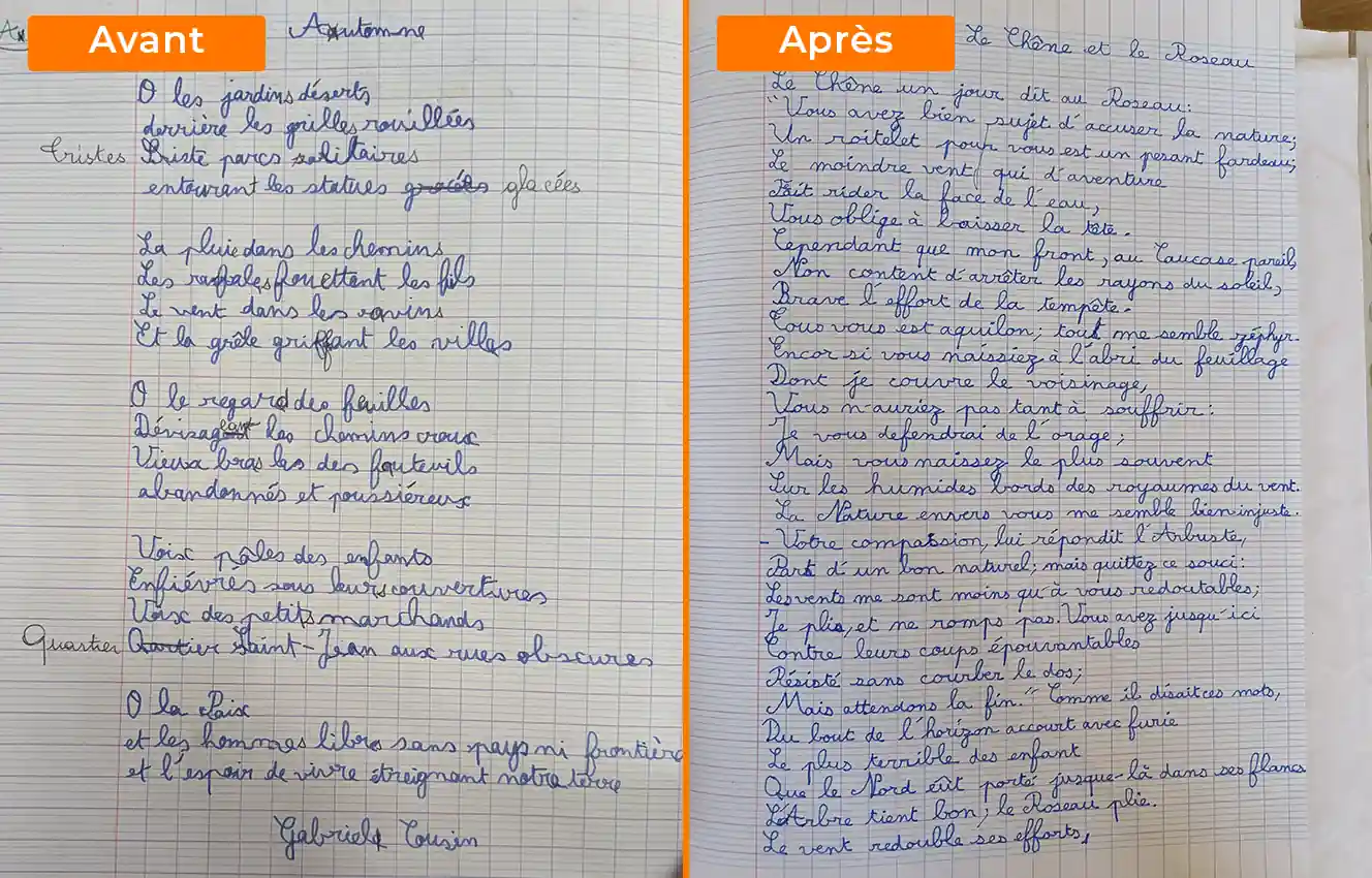 L’objectif final est de mettre en pratique ces améliorations, que ce soit à l’école, au travail ou dans toute activité nécessitant l’écriture.
